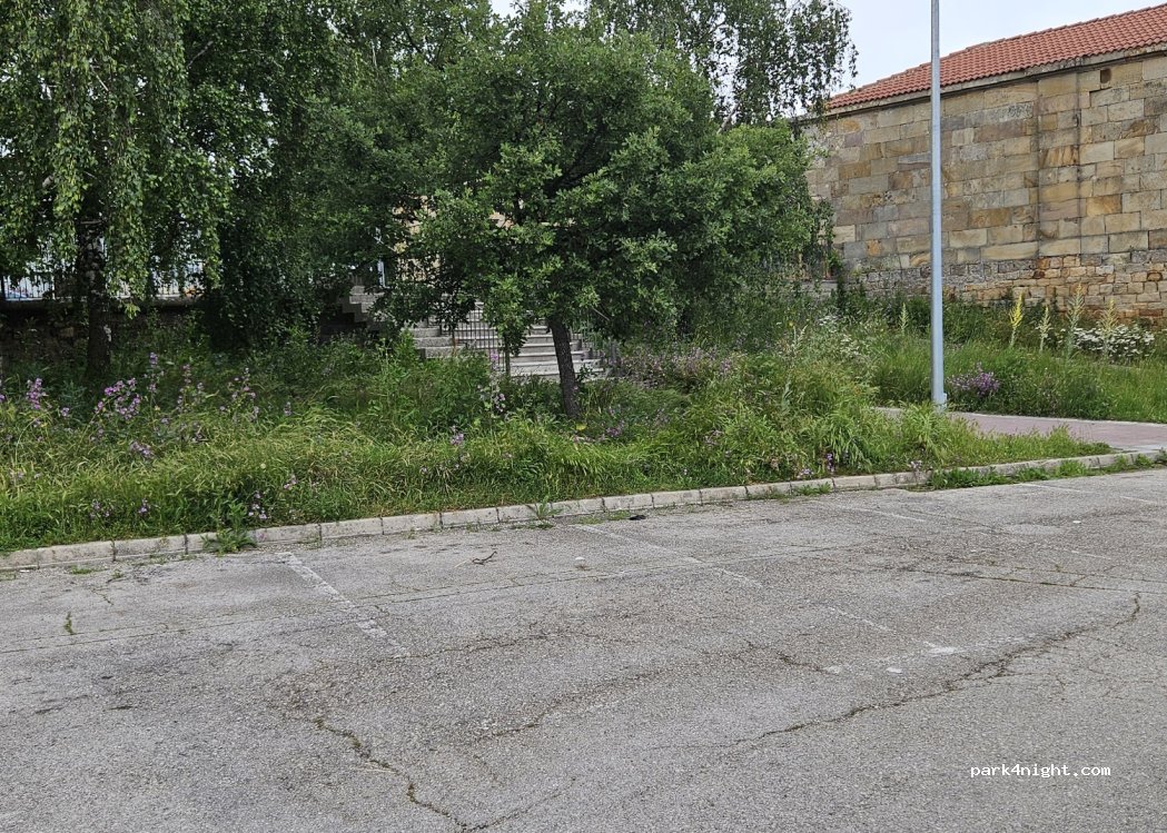 Parking urbano de asfalto, muy iluminado, mucha luz, unas 14 plazas de aparcamiento, algunas muy desnivelado; había bastantes plazas ocupadas por coches y decidimos probar el otro sitio proximo de park4nigth que nos parecía más natural y verde, que fue donde nos quedamos.