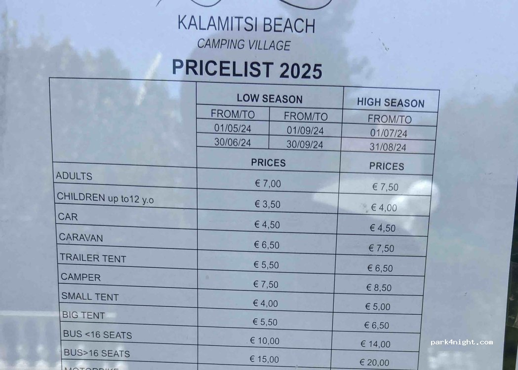 Camping Village spiaggia di Kalamitsi. Campeggio molto affascinante e carino, proprietario gentile, bella piscina, molta ombra, molto pulito. Tutte le strutture necessarie. La spiaggia è un po' poco attraente ma molto isolata.