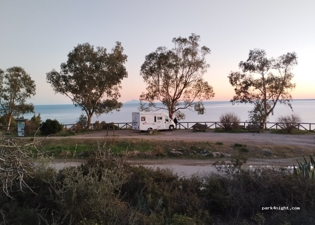 Guter Platz mit Picknickbänken, Aussicht und Schatten. 2 Wege (20 min, 80 Hhm) führen zu Stränden, daher wird der Platz tagsüber auch von vielen PKW genutzt. Nachts teilweise sehr laut, direkt an der am Wochenende gut befahrenen Straße gelegen. Leider ist der Platz sehr zugemüllt (inkl. anderer/stinkender Hinterlassenschaften).