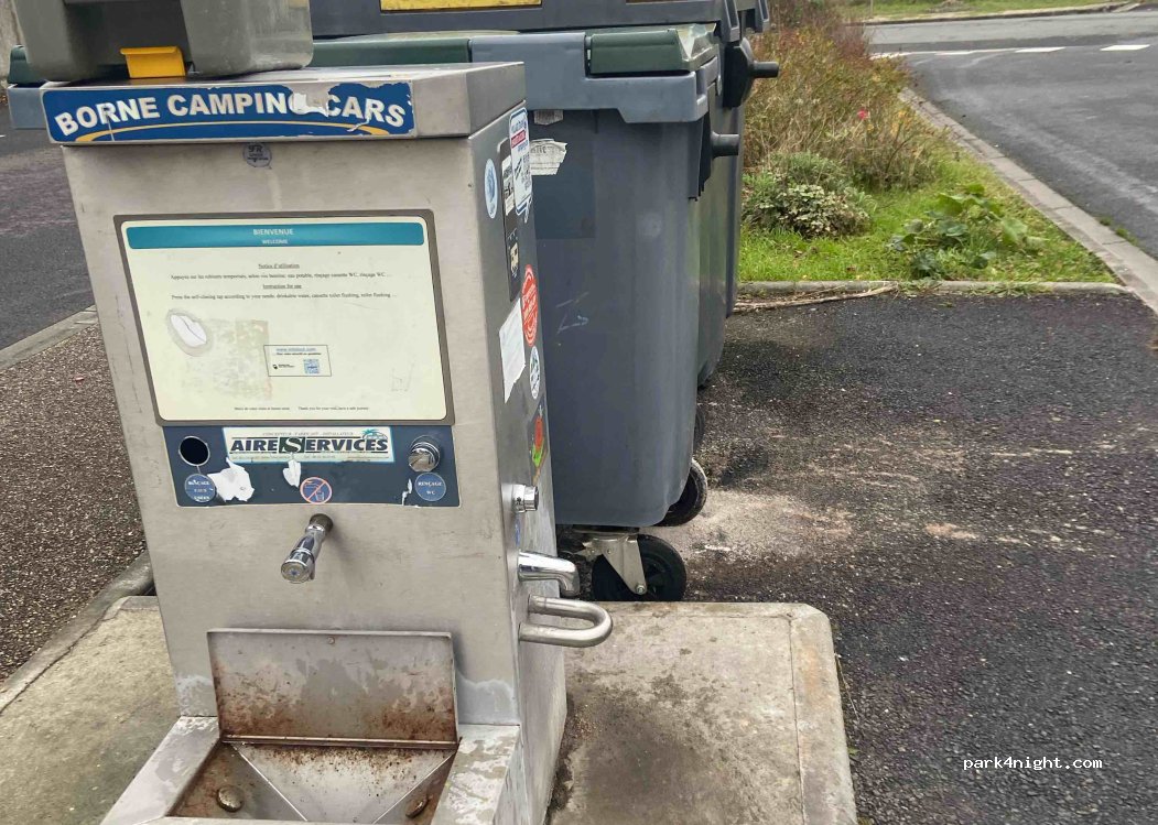 Aire très récente, propreté absolue, service d'eau gratuit. Les commerces sont en centre ville à quelques centaines de mètres. Un grand merci à la commune qui sait accueillir les camping-cars.