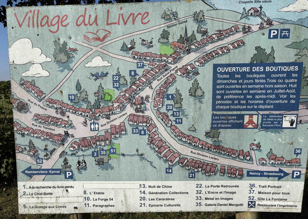 Ce parking commun aux voitures permet aux camping-cars de passer la nuit et je remercie le village pour cette initiative. Ce « village du livre » comporte plusieurs librairies. Le lieu dans sa globalité mériterait des améliorations de propreté et de gaieté pour que les visiteurs aient envie de revenir.