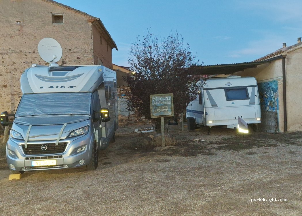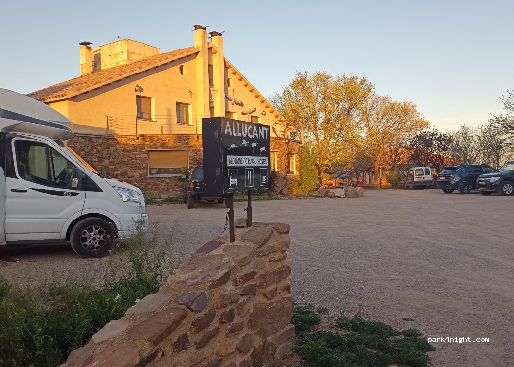 Parking auberge à Allucant, à côté de la Laguna de Gallocanta. Dans l'auberge, il y a un service de restaurant et bar toute la journée, est géré par des gens très sympathiques. En automne/hiver repos le lagon plus de 20.000 grues, à voir magnifique et entendre à l'aube et au crépuscule retour. Il y a de la place pour deux maisons mobiles et plusieurs campeurs, ils préparent gris/noir de la zone d'évacuation.