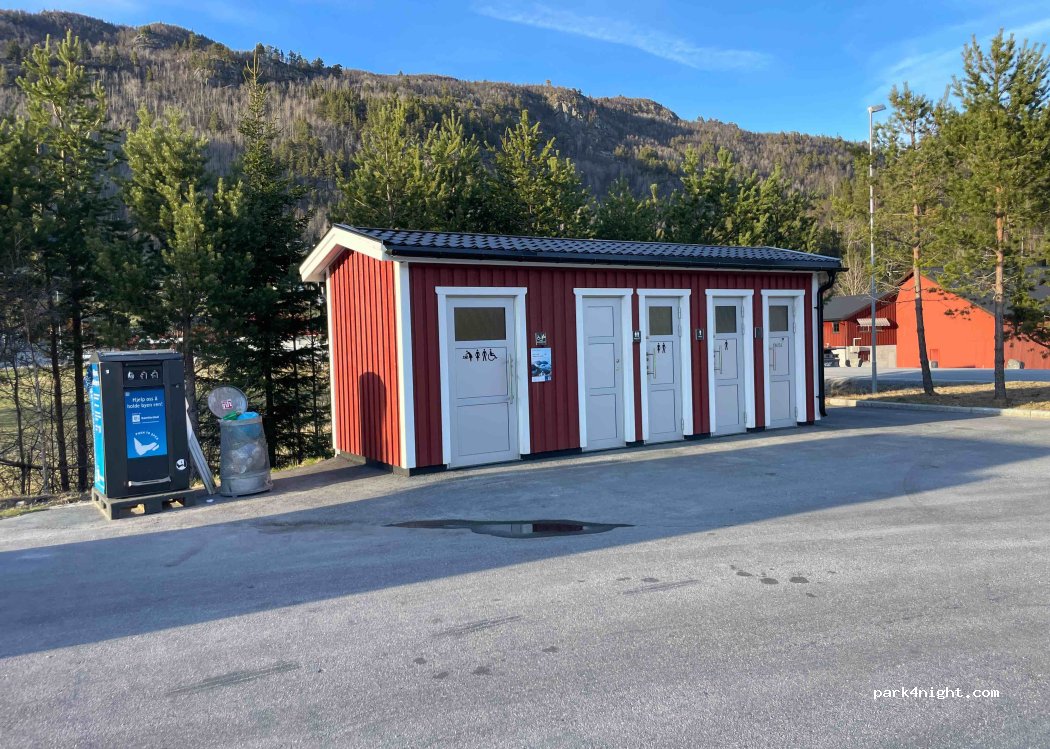 "Nur" 4 Sterne, weil die Entsorgung immer noch gesperrt ist. Die Toiletten sind sauber, warmes Wasser und eine herrliche Dusche sind kostenlos da. Danke an die Gemeinde, danke Norwegen. Bitte haltet alles sauber, damit wir Womo-Reisende und die LKW Fahrer auch weiterhin diese Geschenke nützen dürfen
