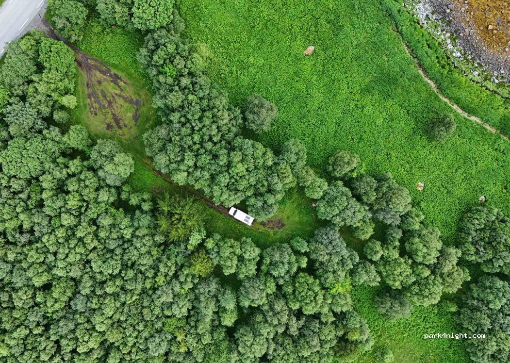 Ein schöner Ort, wenn es trocken ist! Mit Ford Nugget o. VW Bus kein Problem. Leider auch mir Müll im Umkreis, bitte nimmt euer Zeug wieder mit! Kurzer Weg zum Wasser mit grandiosen Blick in den Fjord und gut zum Angeln. Fiese Mücken, gutes Mückenspray erforderlich, Vorsicht auch vorm Bärenklau, giftig! es gibt zwei Stellfläche, oben für etwas größere Camper, unten für kleine Vans bis 5,5-6m