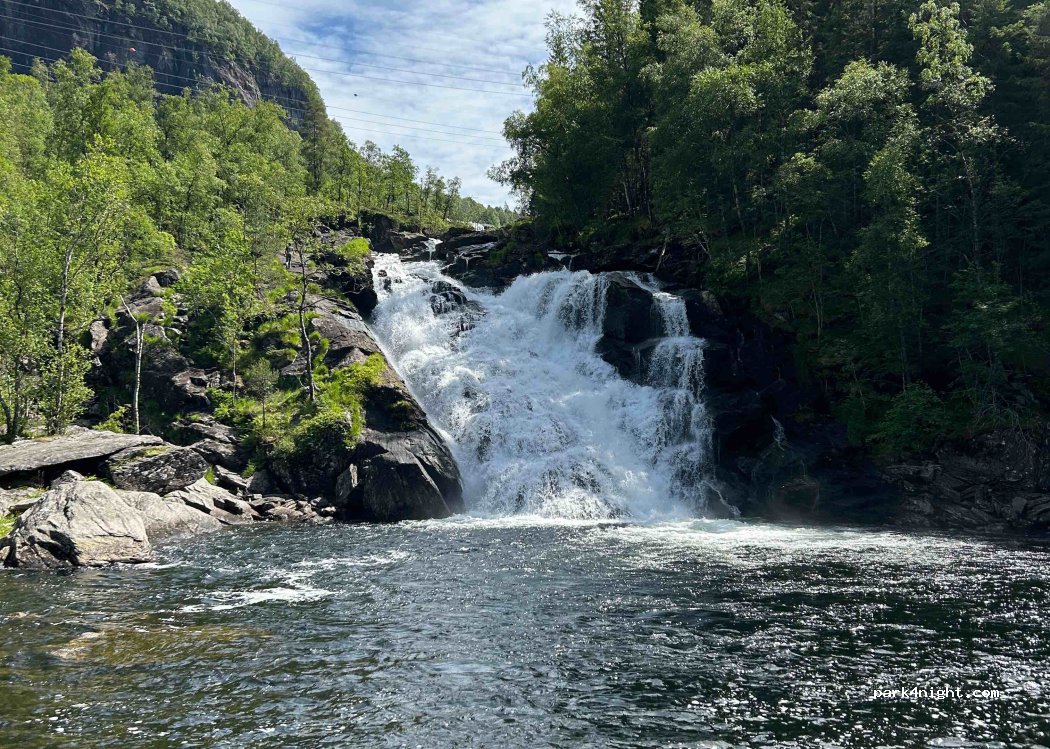 Stellplatz direkt an der viel befahrenen Landstraße. Uns hat das nicht gestört. WC war frisch gereinigt. Super. Busse und PKW können in den ruhigeren hinteren Bereich der aber nur an einer Stelle eben ist. Der Wasserfall wirkt beruhigend. Ein Schild bittet nicht zu Campen. Von nicht übernachten steht da nix. Wochentags ist die Toilette morgends gut besucht.