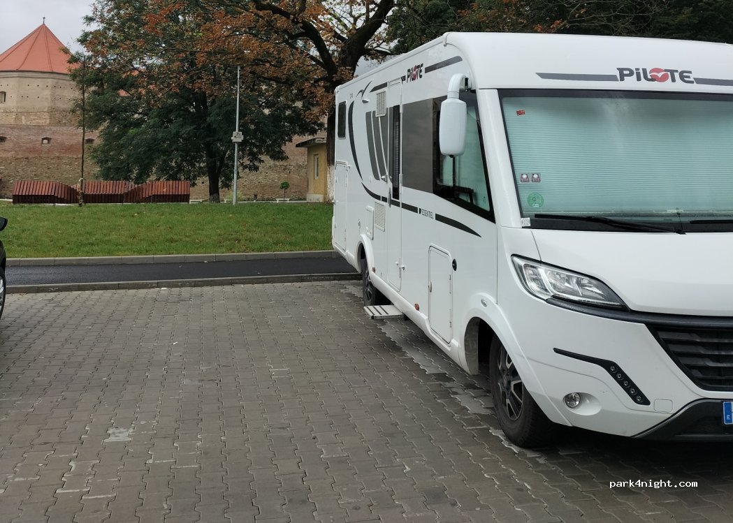 Parking gratuit très proche du centre ville et face à la majestueuse Citadelle de Făgăraș. Accessible à tous les gabarits, stabilisé mais généralement en pente il n'y a cependant aucun service dévolu aux camping-cars. Réception satellite et 4G optimale. Après 22h la rue contiguë au stationnement est peu fréquentée.