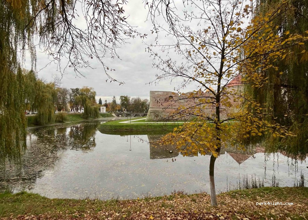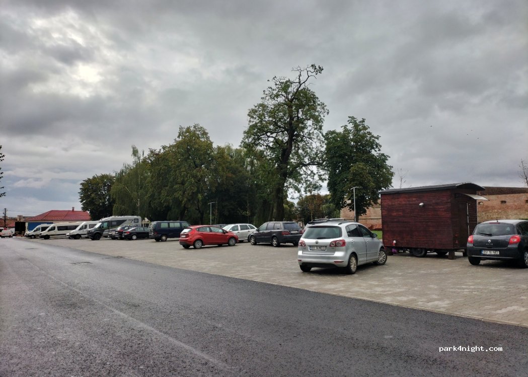 Parking darmowy pod twierdzą w centrum miasta. Na jedną noc polecam. Trochę głośno ale miejsce urokliwe. Przy placu zabaw znajdziecie poidełko z kurkiem. Można doładować wodę do konewki.