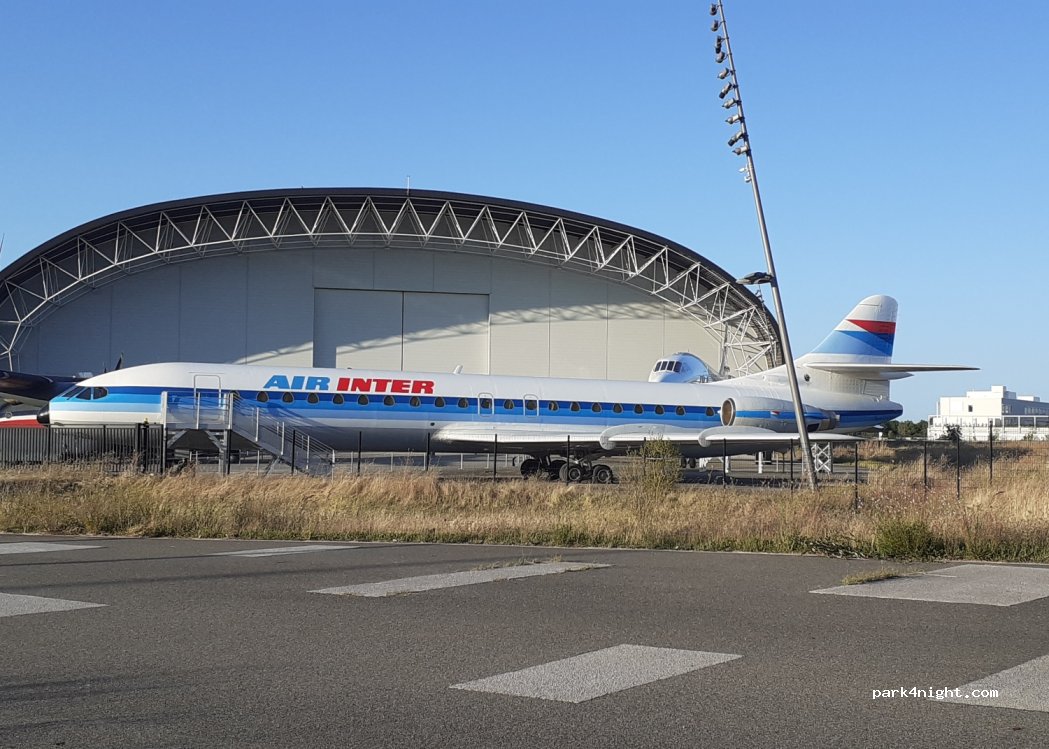 Parking para visitar el recomendable museo de Aeroscopia, con bonitas e históricas piezas de la aviación