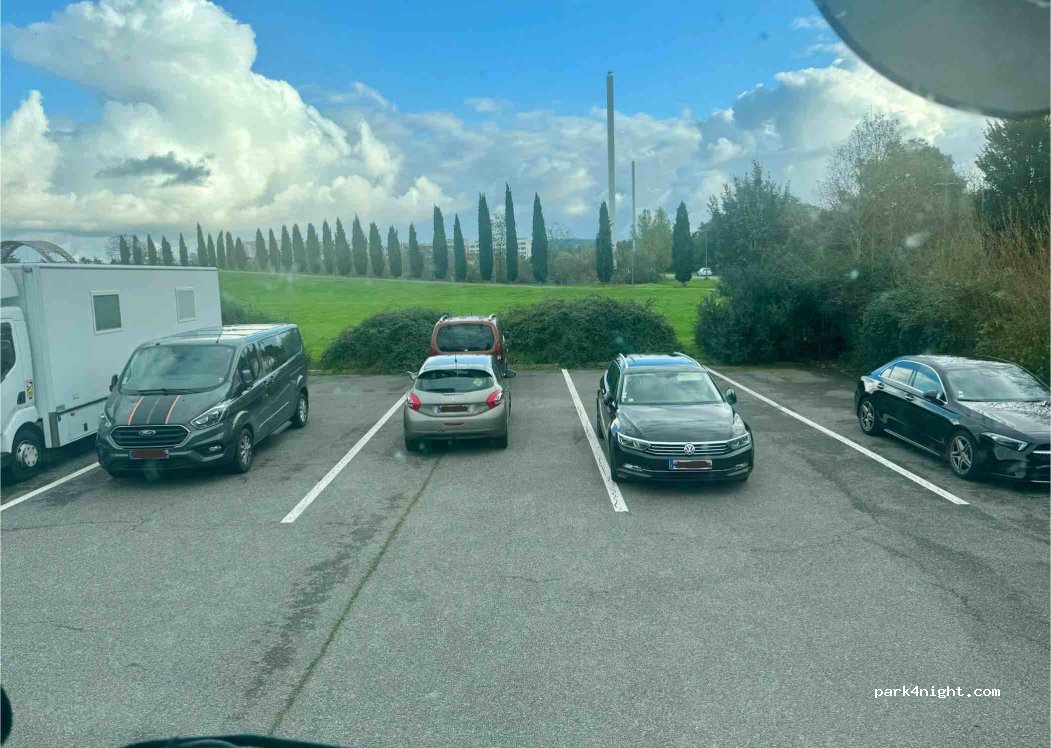 Thank you for providing this excellent parking location—it’s ideal if you’re visiting the Airbus assembly factory, especially with an early booking. The ten flat pitches were easy to find and well laid out. You do need to be self-sufficient, as the only facility provided is a bin, but for a short, convenient stay, it’s spot on. Recommended.