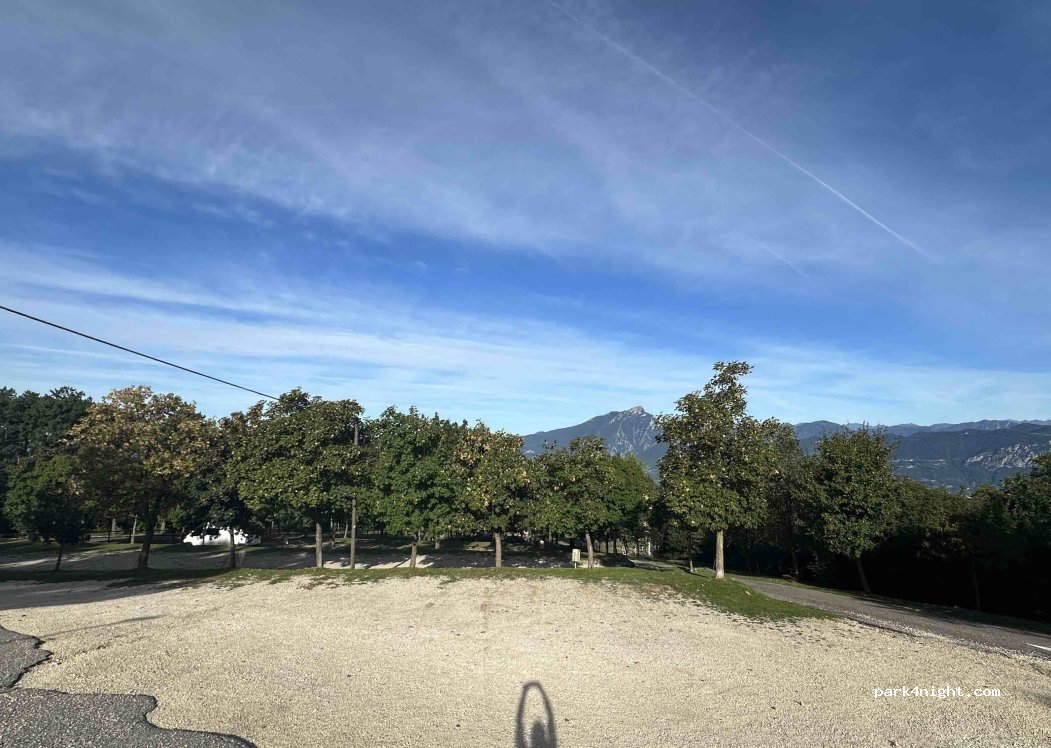 Super ruhiger Platz! Tolle Kulisse mit Bergen und Blick auf den See. Wir sind spät Abends angekommen. Mit uns waren zwei weitere Camper da. Am nächsten Morgen waren wir super überrascht wie idyllisch der Spot ist. Es ist der Parkplatz vom Jungle Adventure Park. Man sollte also bis 10:00 Uhr Morgens zu den Öffnungszeiten wieder weg sein. 30 Minuten bis zum Gardasee. Klare Empfehlung.