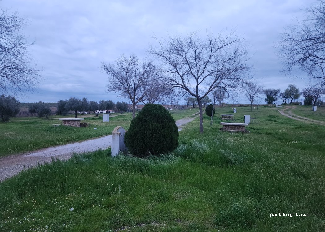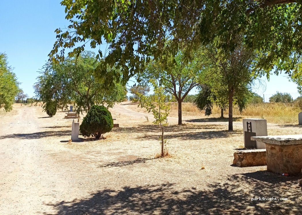 Se encuentra a la izquierda de la carretera nacional, se ve facilmente Zona de picnic con mesas y contenedores de basura, sombreada y de fácil acceso. La nacional esta paralela a la autovia, te desvia por la nacional y esta cerca. terreno tierra y chinos Ideal para parar a descansar