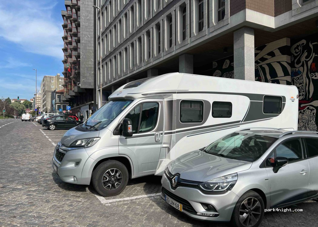 bien sitio para aparcar la furgoneta e ir a dar una vuelta por oporto. se puede pagar con la aplicación del parquímetro. En teoría sólo son dos horas, pero si vais varias personas y cada una de descarga la aplicación podéis ir renovando la estancia. no es sitio para dormir.