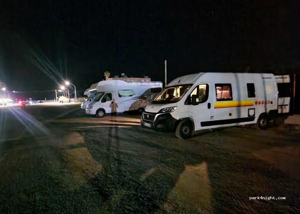 In der Nebensaison nicht viel los. Übernachten problemlos und relativ ruhig wenn man eher weiter hinten parkt. Kostet 1€/Std oder 5€/10 Std in der Zeit von 8:00 bis 21:00 Uhr. Schöner Sandstrand über die Straße 100m rechts.