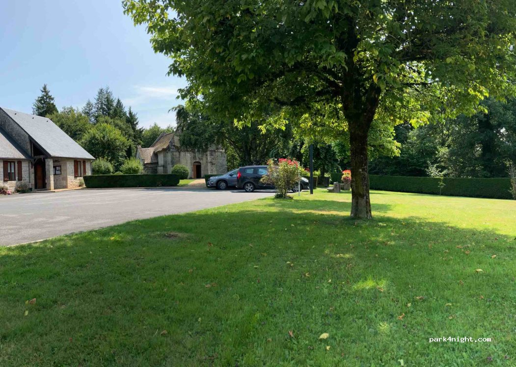 Parking plat, calme. Beau cadre. L'église sonne à 7h du matin. Merci à la mairie d accorder le parking pour une nuit.