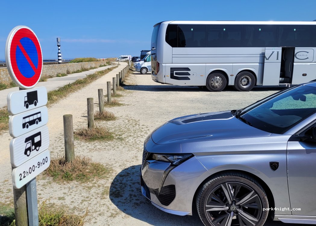 Parking de jour à partager avec les voitures, situé tout à côté du phare. Pas de problème de stationnement pour les grands véhicules.
