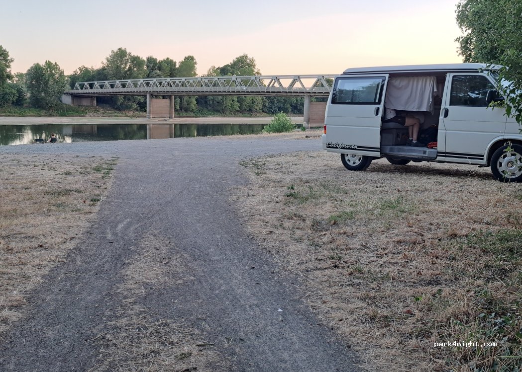 Bellissimo si dorme sulla loira. Solo sosta senza servizi. Si sente un po il rumore del traffico sul ponte nelle ore diurne. Alle 6 ci si sveglia con il canto del gallo della casa di fianco