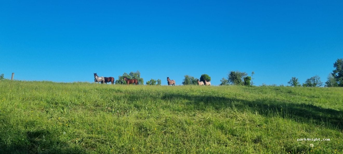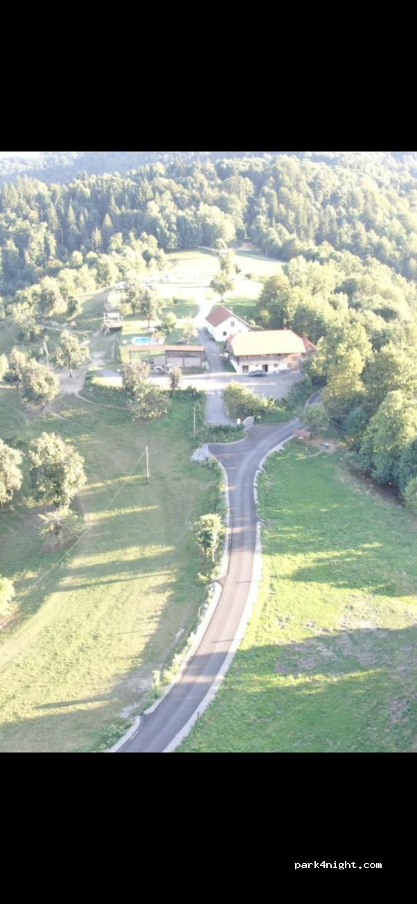 Un des meilleurs spot de Slovénie sans aucun doute. Toutes les commodités, douches , cuisine , vidange WC , vidange eau grise , eau potable.... et la piscine ! Mais surtout la vu !!! Extraordinaire ! Pleine nature, les chevaux juste à côté, le silence , le ciel étoilé... la totale. On était de passage, on est resté une nuit de plus pour le plaisir. Merci aux propriétaires.
