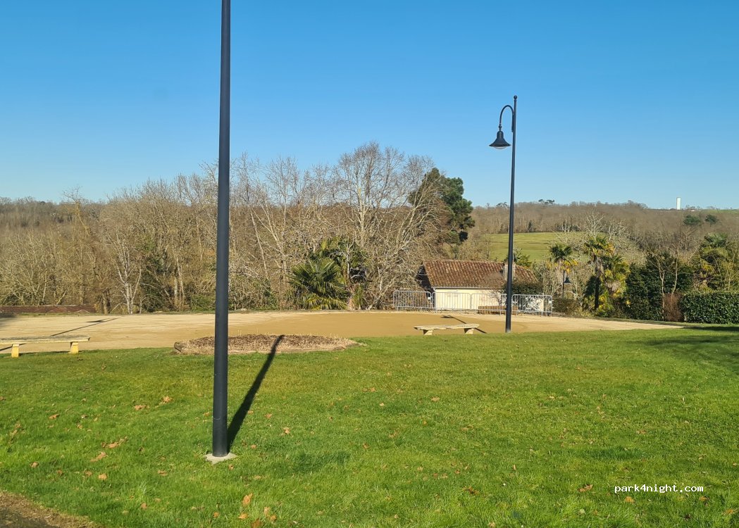 Depuis les dernières photos. les arbres ont été coupés pour raisons sécuritaires,dommage pour l’ombre.Il n’en reste pas moins calme et accueillant. Les toilettes flambant neuves de la mairie sont une référence dont bien des municipalités devraient s’inspirer.Et cerise sur le gâteau Surtout la visite en ami du Castet par Jean Yves.