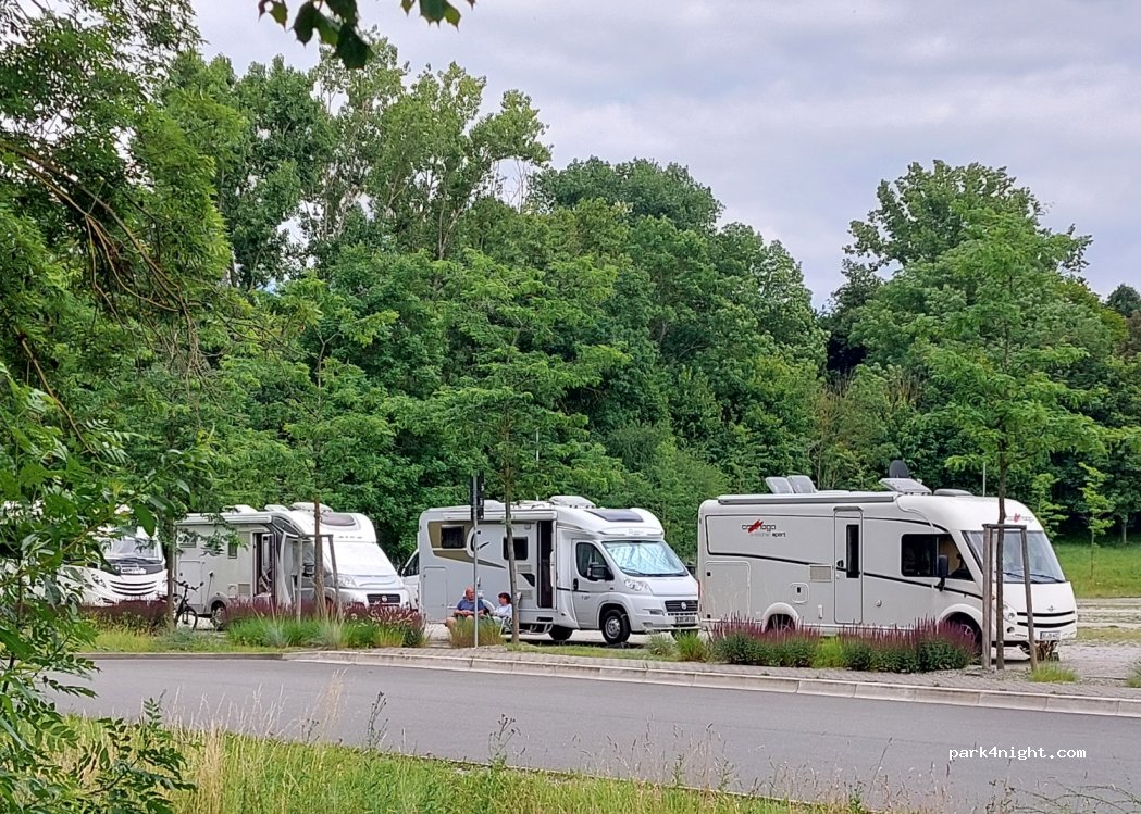 Prima Platz zum Uebernachten! Stand dort mit 4 anderen Campern in einer Reihe, damit waren alle Womo-Plaetze besetzt. Es ist zwar ein sehr großer und (abends ruhiger) Parkplatz, aber Womos duerfen nur einen kleinen Bereich benutzen. Gleich nebenan ist das Schwimmbad und ein idyllischer Park mit See und einem Cafe. Kosten: 2 Euro fuer eine Park-Tageskarte. Klare Empfehlung!