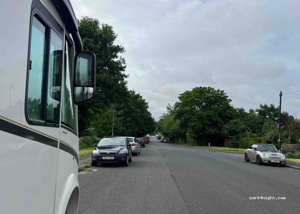 Great stopover. Quiet wide road. We parked here as Malt Shovel pub down the road had let cars onto the motorhome pitches even though we had booked an overnight stop. Their loss. Will stop in this here again when in the area.