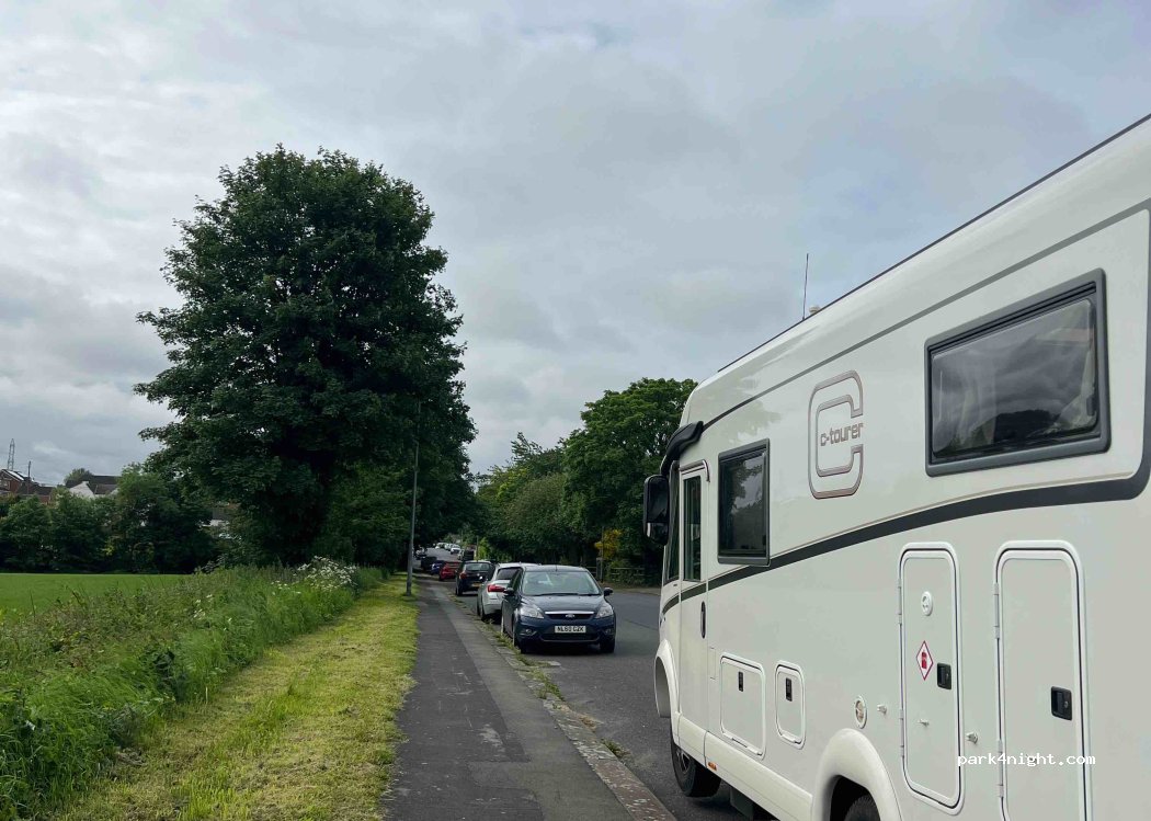 Nice quiet spot overnight, only a few cars coming and going. Well lit, public footpaths, bins and a garden centre at very end of the road. Does start getting busier from around 5.30 in the morning. Think staff from local businesses/ factories use it to park. Would definitely stay again.