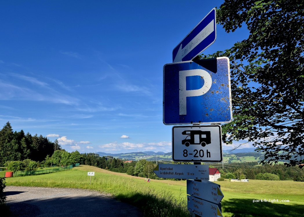 Haben heute spontan hier angehalten. Das Kurhaus ist nur wenige Minuten von hier entfernt und man kann dort für 15 € die Nacht inklusive Strom, Wasser und WLAN parken. Übernachten ist auf dem Parkplatz nicht möglich. Laut Schild dürfen Wohnmobile nur bis 20:00 Uhr hier stehen. Der Ausblick ist herrlich und die Grillen Zirpen in den Wiesen neben an. Sehr zu empfehlen ist Das Restaurant Postkutsche, welches nur wenige Minuten von hier entfernt in einem Feriendorf nicht. Sehr freundlich und sehr leckeres Essen! Wer mag, kann von hier aus auch auf die den Skyline Walk gehen und hier für 3,50€ parken.