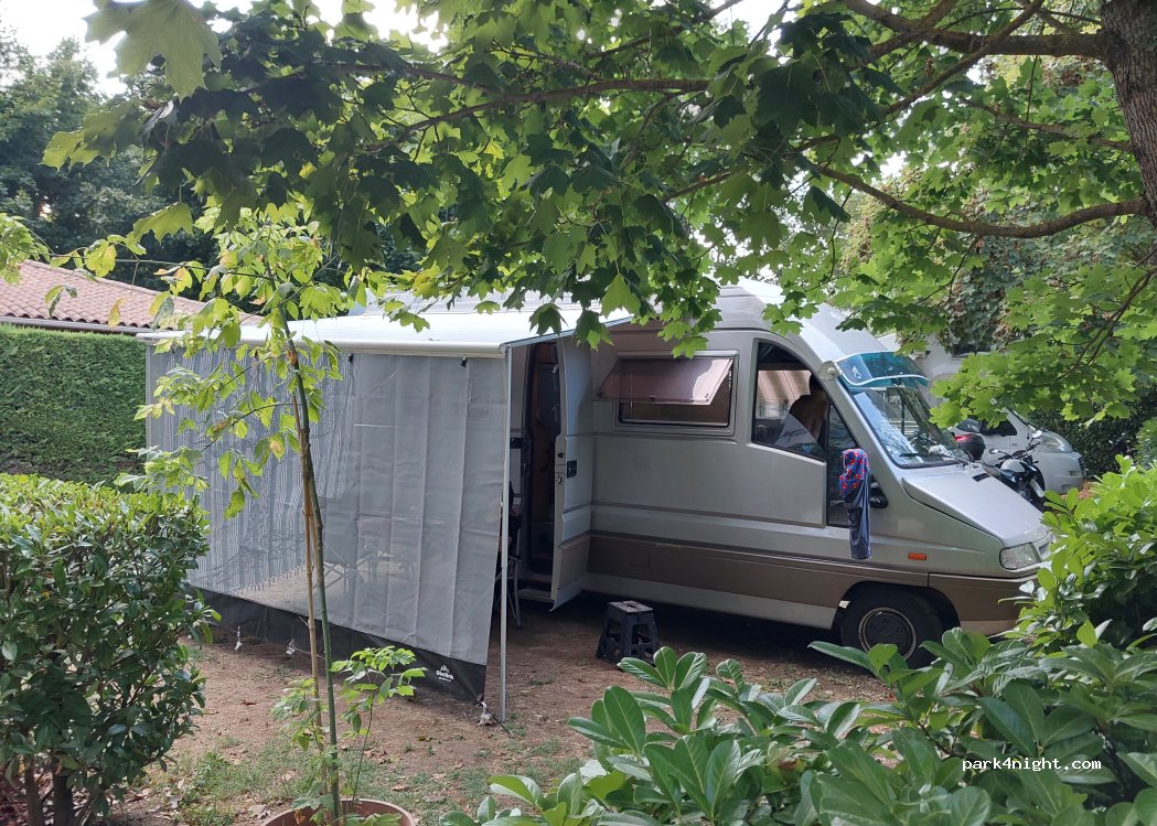 Probably our favourite site , pitch by the river , short bike ride to town , massive pitches , and all services bar grey tip out for 12euro on Asci card wonderful. Fabulous for any ornithologists as many varieties of birds