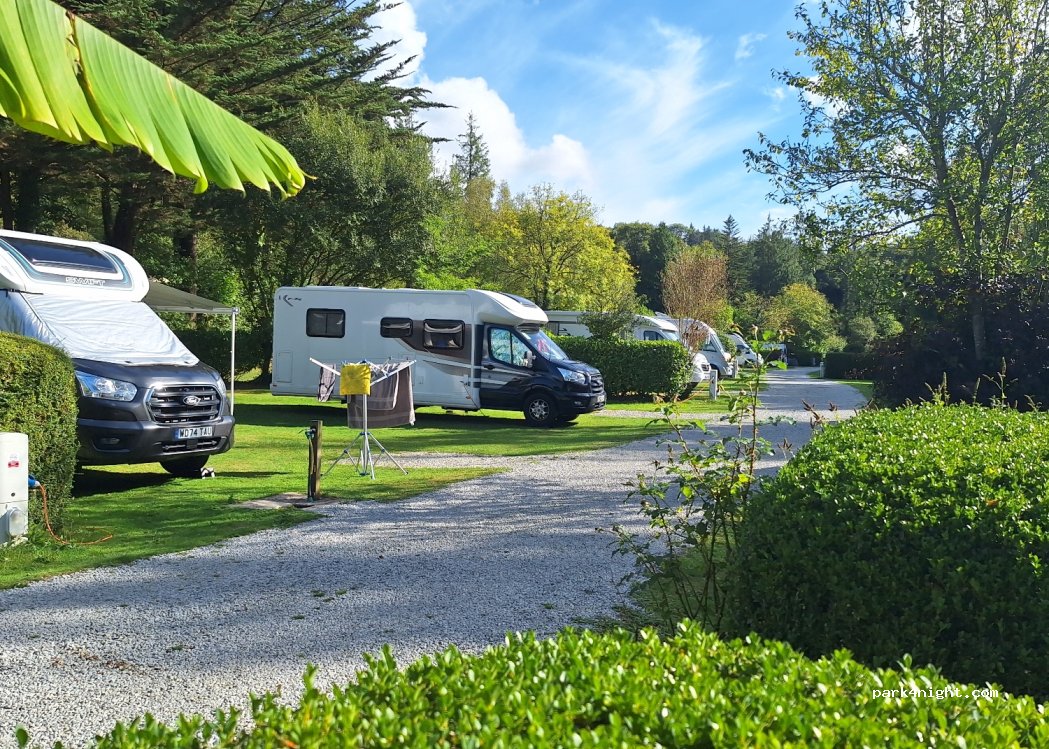 Sehr nette Betreiber, überwiegend durch Hecken abgetrennte Stellplätze, saubere Sanitäranlagen (Einzelwaschkabinen, große Duschen),Waschmaschine, Trockner. Gut geeignet um Ausflugsziele wie die Halbinsel Crozon (Pen Hir), Menez Hom, Quimper oder Huelgoat zu erreichen.
