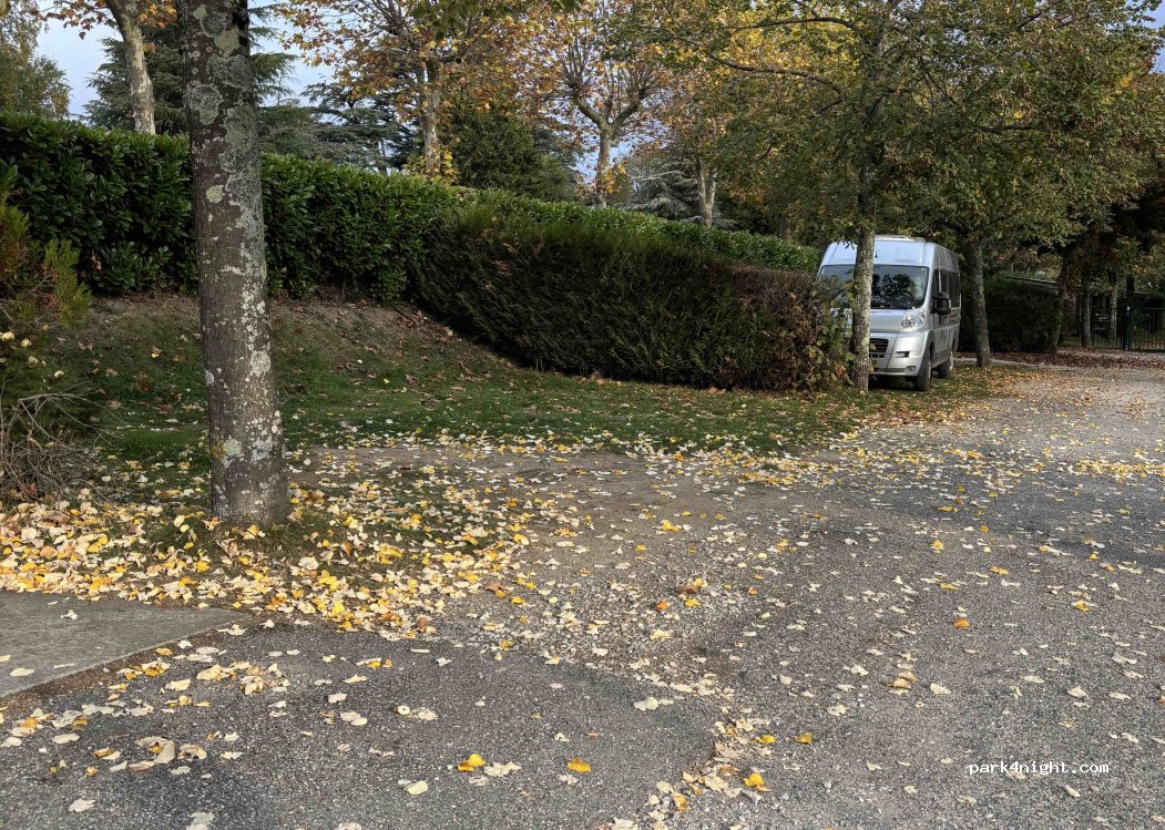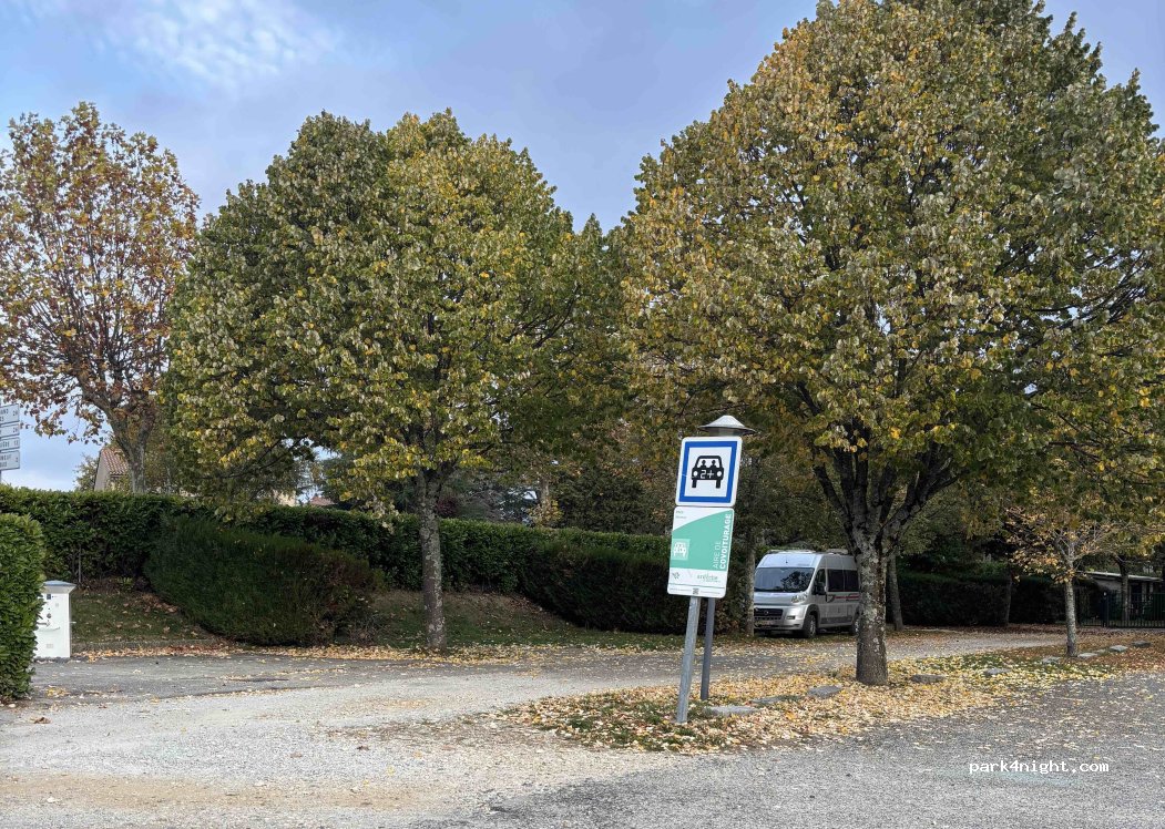 Stationnement gratuit. Merci à la municipalité. 5 places bien accessibles. Calme la nuit entre 23h et 6h. Route assez passante. Village à 10 mn avec marché local le jeudi.