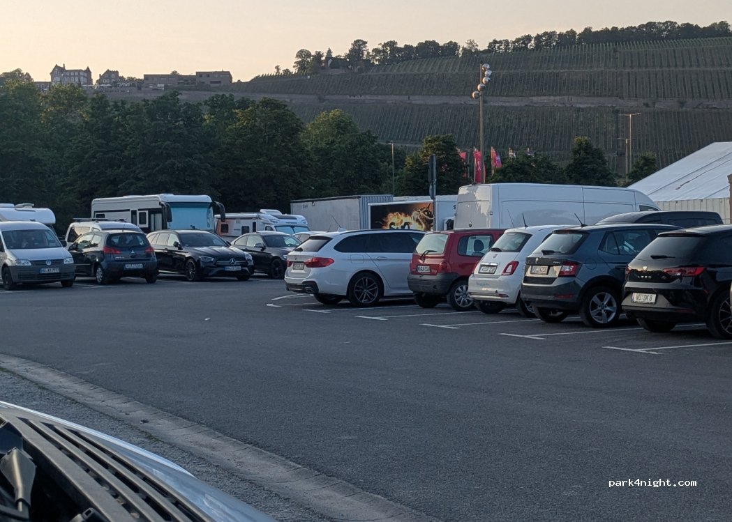 Kostet während des Africa Festivals 10€ pro Tag (Übernachtung möglich). Ansonsten ganz nette Lage mit Blick auf die Weinberge und relativ ruhig.