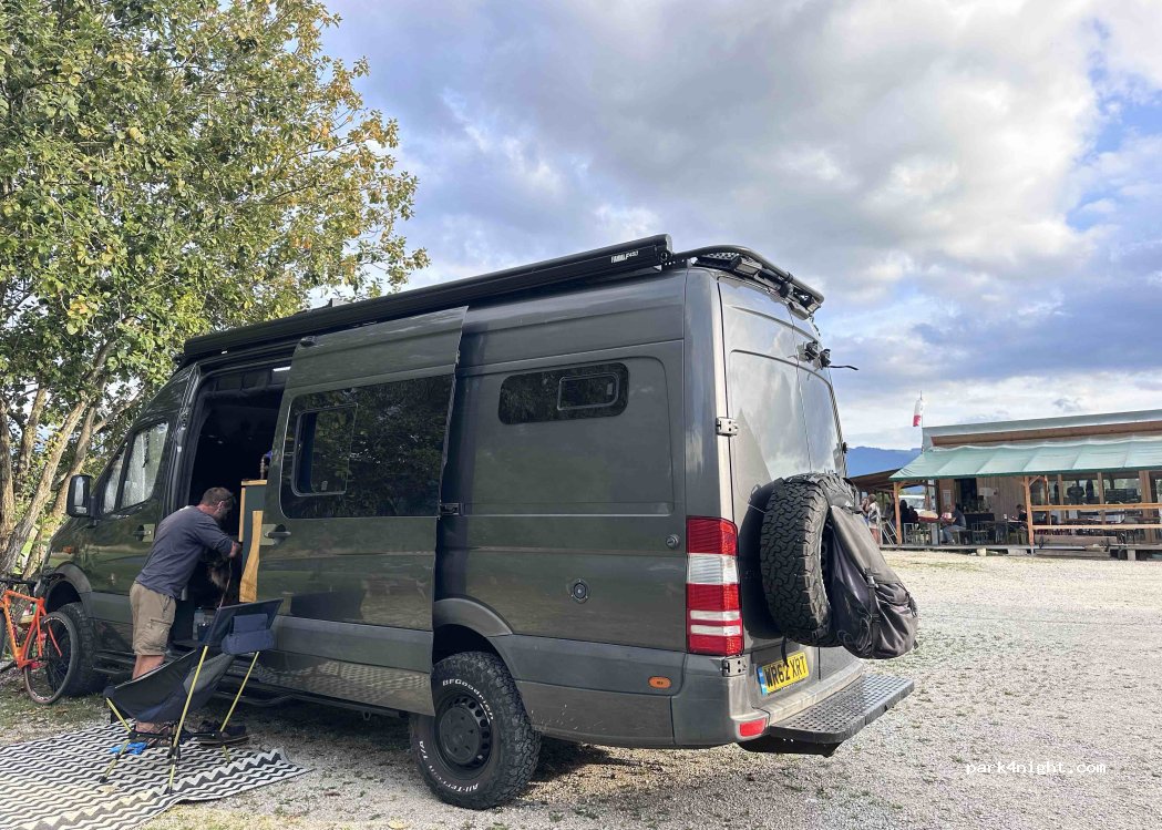 We like this place. It’s friendly and honest with good facilities. In truth, a good percentage of the appeal is that we are both paragliding pilots. If you are a perfectionist, you might find some aspects of the site a little untidy, but we are here at the end of the busy season, so we’re giving them the benefit of the doubt. X