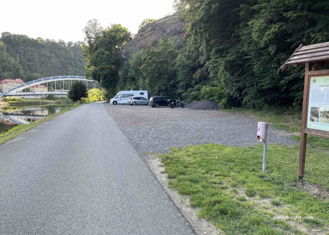 Parking sympa au bord du Vltava. Possibilité de randonnée jusqu'à Smetanova vyhlidka super point de vue. Coin sympa avec petit bar resto. Nous y avons passé une nuit sans problème.