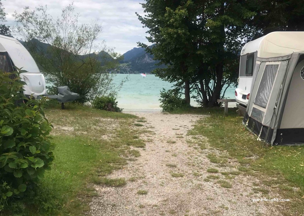 Hezky kemp primo u jezera, hodne stalych karavanu, ale stale velka stani na vyber. Aktualni cena pro 2 osoby, camper, 36 Eur vcetne pobytove dane.