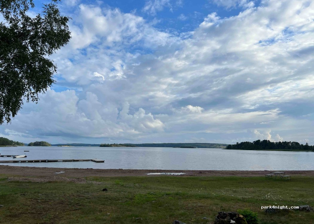 Sehr schöner Stehplatz direkt an den Schären mit Badestrand. Wir wären kurz vor 19:00 angekommen und wurden vom Betreiber nett begrüßt. Die Nacht für 320 Sek ohne Strom konnten wir mit Karte bezahlen. Es ist ein Geheimtipp, wenn man Ruhe und Entspannung sucht.