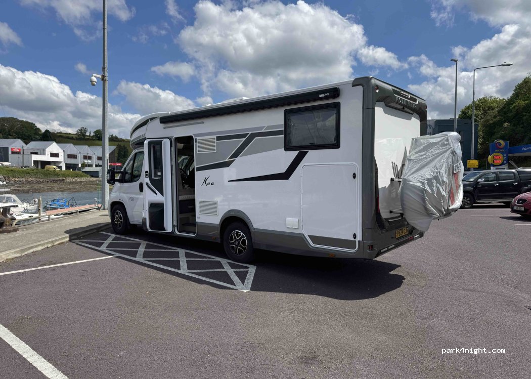 A short walk to the town and Bantry House. Secure and toilets in working order. We didn't use the showers, so can't comment. Close electric points. Not too noisy for a main road. Very windy but you are in the bay and it was a stormy night. I think this is a better option than the free car park opposite the bay.