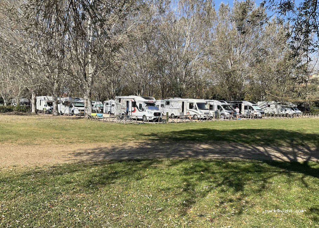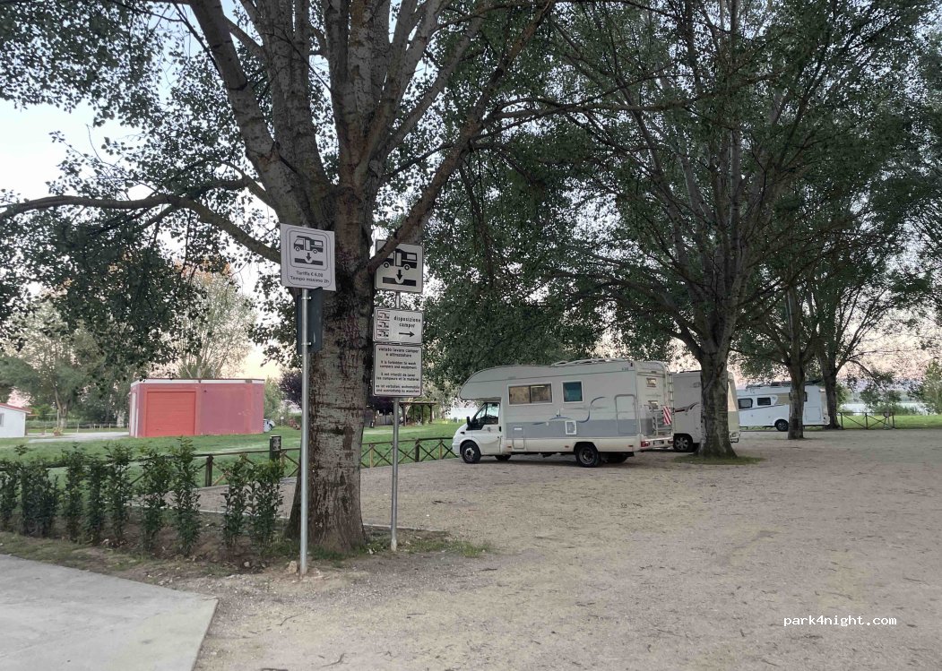 Endroit très agréable à l'ombre avec les services et une surveillance régulière. Paiement par horodateur (12 euros électricité comprise). Recommandé pour une pause qui peut être prolongée (balades à vélo possibles)