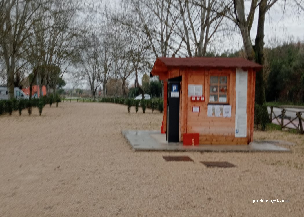 Area completamente ristrutturata e ben tenuta,ombreggiata e con delimitazione da siepe.Terreno in piano su ghiaia drenante con attacco corrente.Due lavelli.Zona barbeque.Sosta 20€x24h altrimenti carico e scarico 6€x2h. pagamento ed entrata elettronica tramite targa automezzo.Vicino al lago e al chiosco per aperitivi e colazioni.A 15 Min a piedi dal centro. Complimenti al comune,Toopp