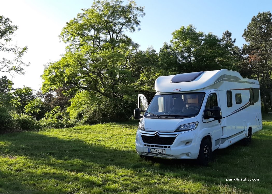 Belle étendue herbeuse, grand espace, calme la nuit. Dérangé ce matin par des ouvriers à 6h15, mais j'imagine que les Autrichiens ne coupent pas du bois tous les jours. Tourner à droite juste avant la barrière.
