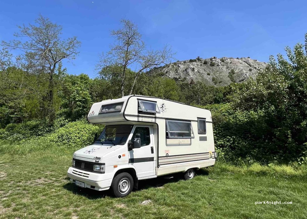 magnifique endroit plat et herbeux. mais en ce samedi soir les tables sont occupées très tard par des buveurs de bière très bruyants. on s'est rabattus sur le parking plus haut à côté du skate Park moins joli mais plus tranquille. autre possibilité : monter en haut de la montagne par route a peage ( 4 euros). parking avec superbe vue sur le Danube mais du monde jusqu'au coucher de soleil.