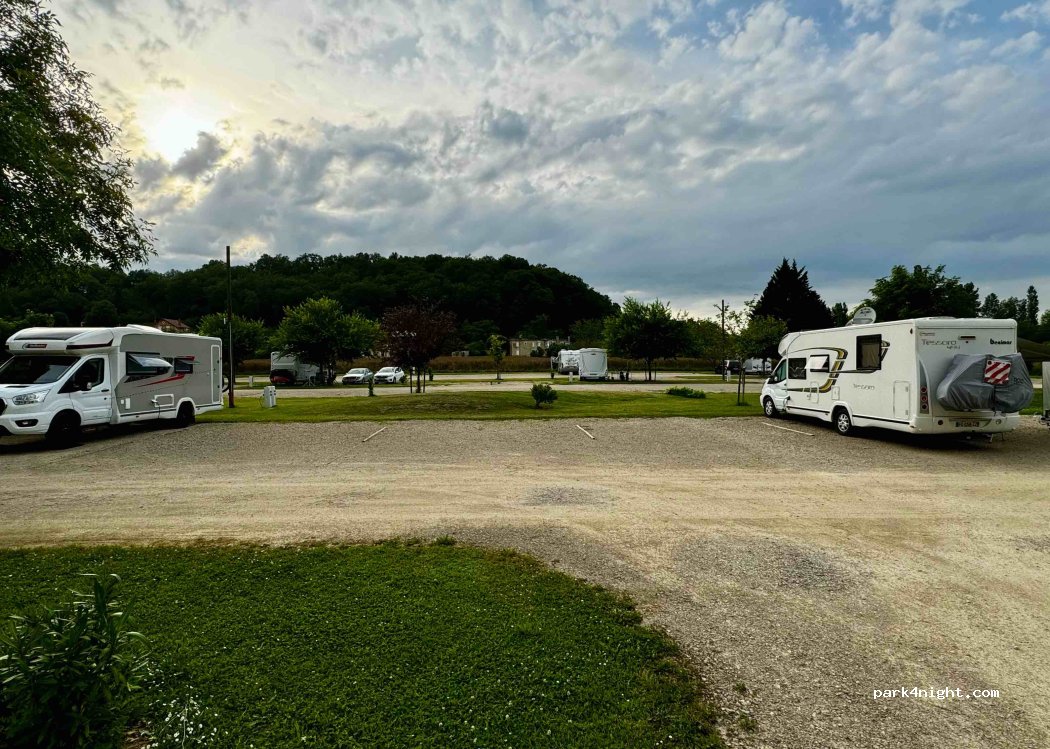 We broke down in our motorhome and were towed here, as the repair would take a week. What a happy find. The owners are friendly and helpful. The aire is immaculate and quite. All services are included. We feel very safe here. It is a flat, gentle stroll into Montignac, which is beautiful. We highly recommend the natural swimming pool in the town which has recently opened.