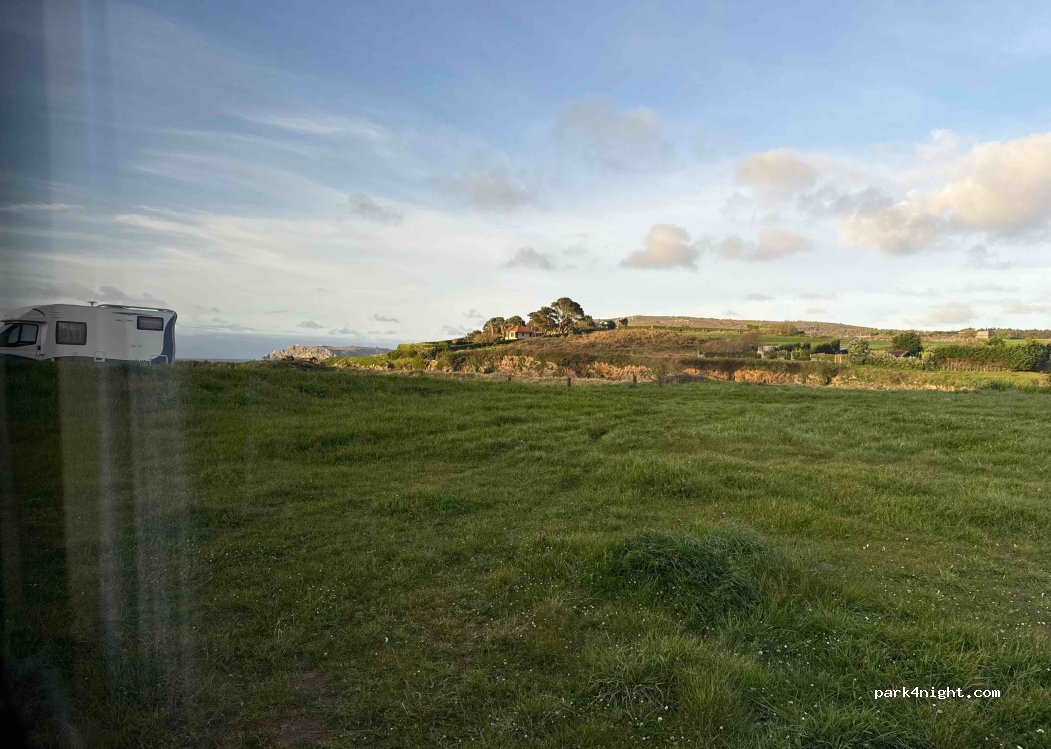 Lugar recomendable, en un prado, junto al acceso a la playa. Apto para todo tipo de autocaravanas. Entorno muy tranquilo y bonito, con espectaculares vistas, zona de baño con muchas familias de día, en la zona del río o de la playa. Noche sin ruidos, para dormir perfectamente.