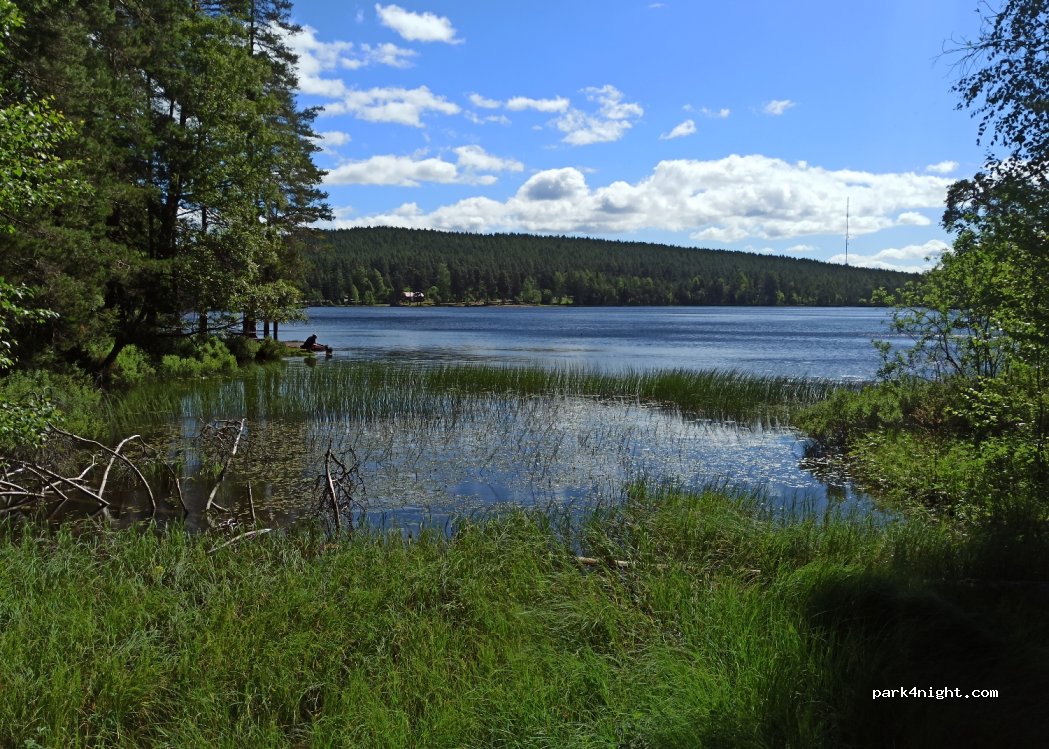 Wunderschöner Platz, Toiletten und Badestrand nur 200m entfernt. Leider ist hier mittlerweile (laut einer Schwedin erst seit kurzem) Parkverbot entlang des Weges direkt am See. Wir standen trotzdem eine Nacht dort, weil wir erst am nächsten Morgen die Parkverbotsschilder gesehen haben. Camping ist nicht verboten, auf dem Parkplatz nebenan kann man also schlafen.