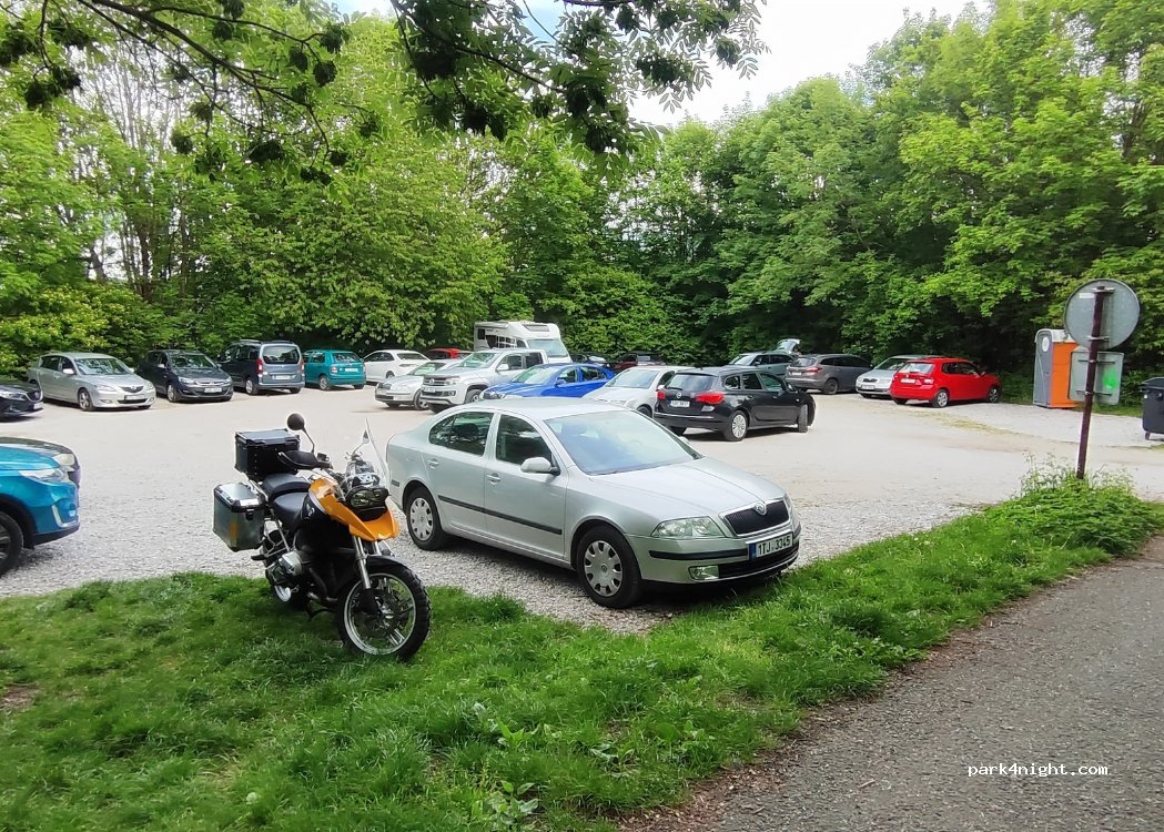 Skvělé místo na parkování i přespání. Klidné, ale ne opuštěné. K dispozici lavice a stůl, kompletní odpady a chemické WC