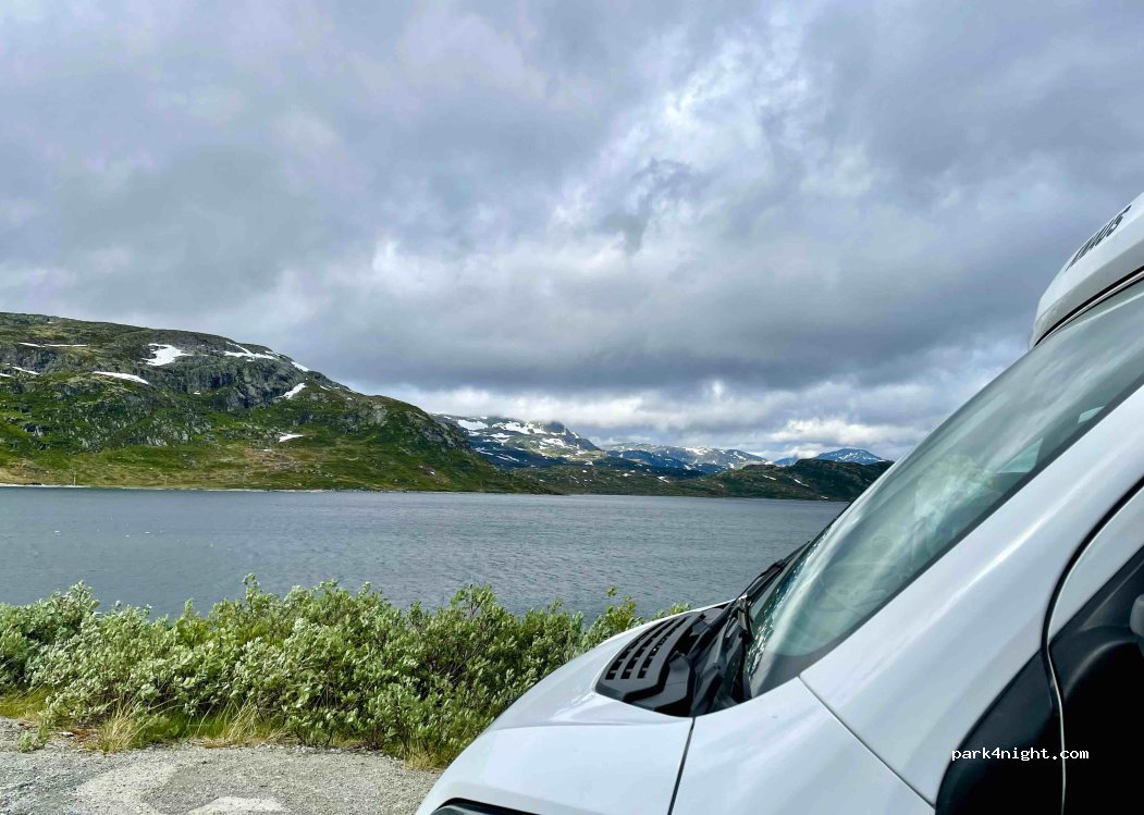 Super nice views. You are allowed to stay here overnight, not within the parks borders. Cost 150 NOK. Payment can be difficult as we had no internet connection on this spot. A man came to collect in the evening. Please take your garbage with you.