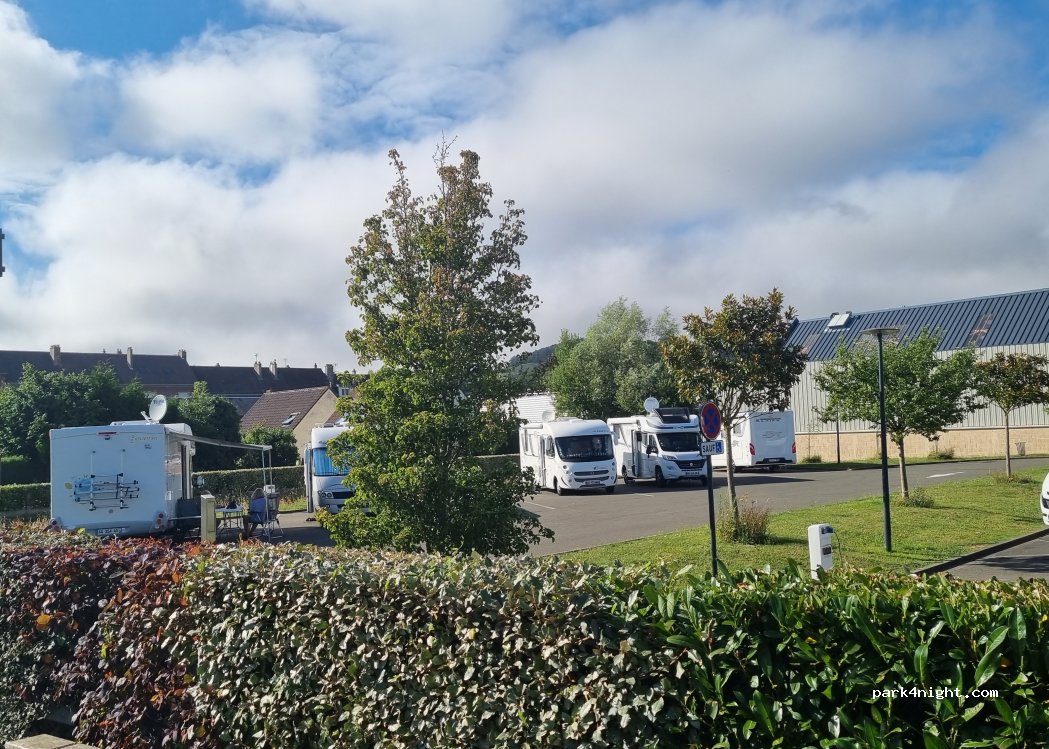 Aire de camping car de la commune, un peu à l'exterieur. Lors de notre passage, la borne de service était en panne. A 8h30, un employé de la commune est venu pour encaisser 6€ et nous a donné un reçu. Nous étions seul. Nuit très calme.