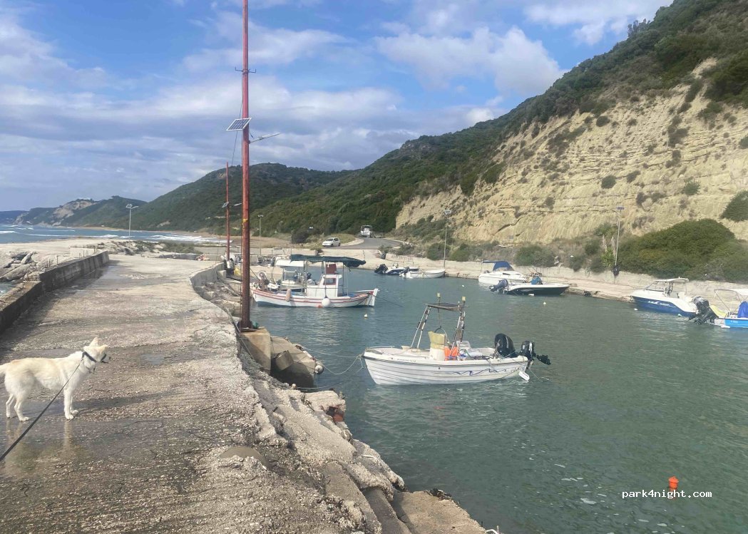 Good spot with nice views, and the beach is close. The sea is a bit wild compared with the north of Corfu. But watch out if it rains, the dirt road becomes a pool of mud. Many fishermans coming during the day.