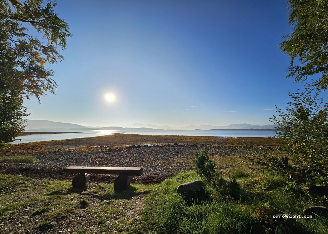 Von einem ausgeschilderten Rastplatz führt ein schmaler Weg Richtung Meer runter. Dort kann man mit einem schönen Blick auf die Berge und unmittelbar am Ufer übernachten. Es gibt hier sogar eine kleine Feuerstelle. Der Weg ist sehr schmal und man muss Wohnmobilglich rückwärts zurück, aber näher an die Natur geht's kaum.