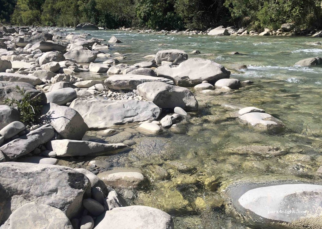 En mig de la natura i al costat del riu.Parceles amb gespa i ombra.WC i dutxes molt netes amb molta pressió i aigua super calenta.Hi ha restaurant, piscina climatitzada, jacuzzi, llits elàstics, parc infantil, camp de futbol, zona barbacoes, etc. 33€/nit: AC+2 adults+1 nena sense llum. Hi ha serveis d’aigües per AC’s: no els vam utilitzar. Càmping familiar i tranquil. Moltes activitats pels nens.