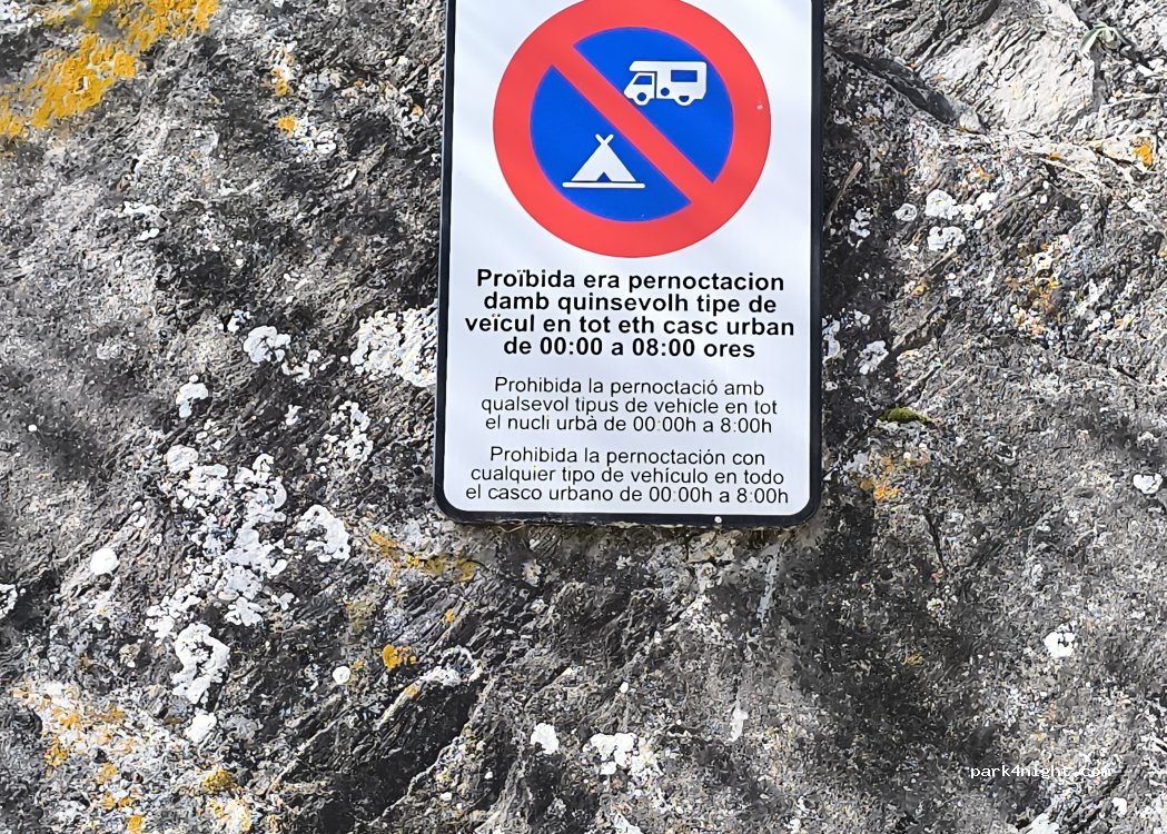 Municipal parking a dozen places. Quiet. Near Aneto point of view. No shade in the morning but cool because 1300m altitude. Ok for any type of vehicle. overnight prohibited
