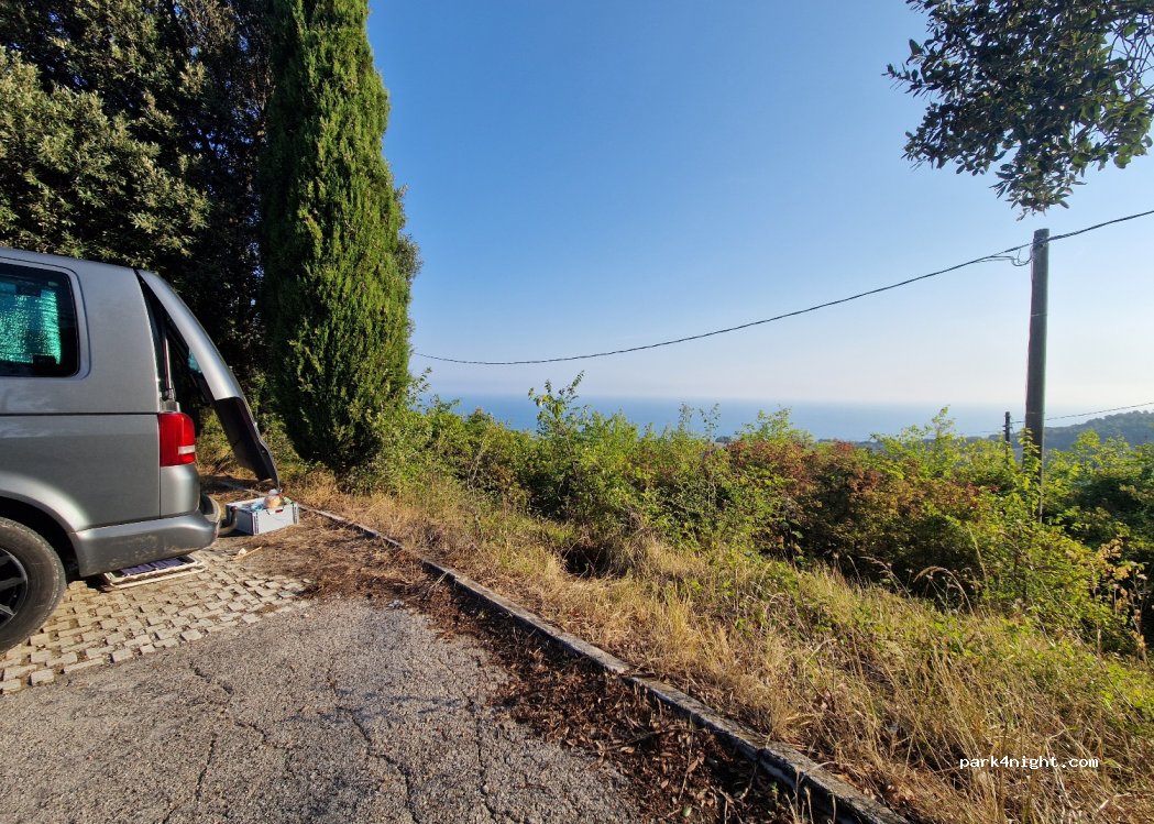 Vista eccezionale sia lato mare sia entroterra. Pace e quiete, aria fresca. Passate 2 notti, nessun problema con le persone del vicino paese. Lo spazio è ok anche per mansardati oltre i 7m. Per arrivarci le strade sono strette e tortuose, la migliore è quella che sale dalla provinciale 1 dall'ex campo sportivo passando dall'Osteria del Poggio